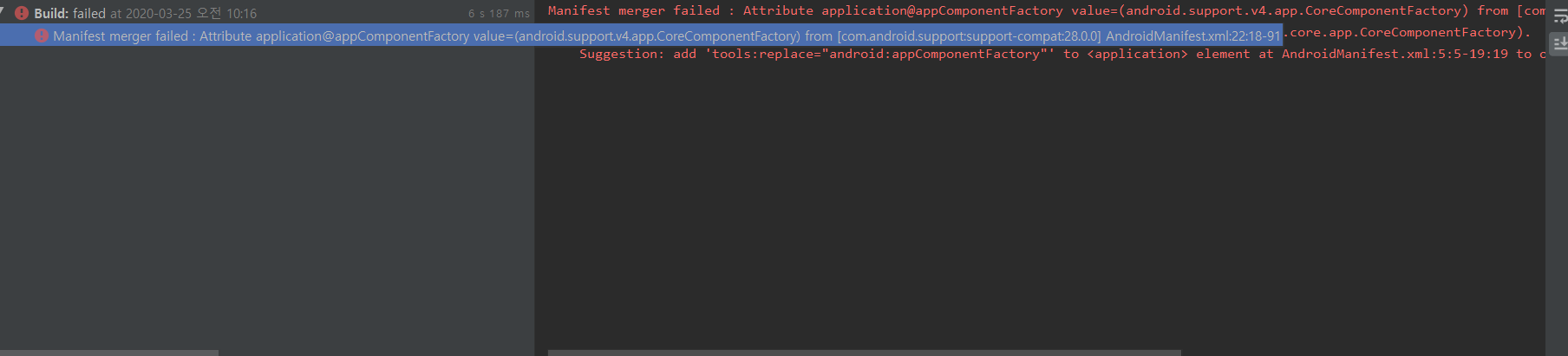 Android P 이후 구글의 서포트 라이브러리들이 androidx를 사용하게 되었기 때문입니다.