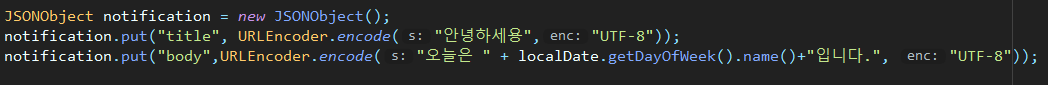URLEncoder를 통해 utf-8로 인코딩을 해서 담아주고,
