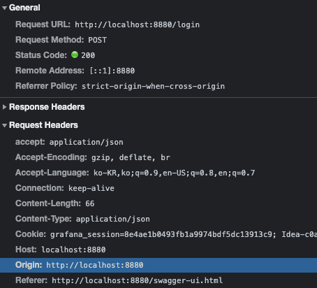 당연하게도 Swagger에서 테스트를 했을때는 정확하게 Origin이 들어가 있었다.