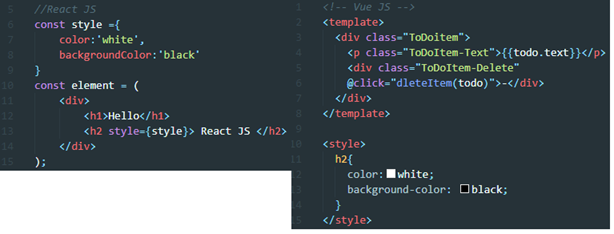 문법 | JSX/JavaScript 기반 개발 | HTML 기반 Template구문 개발 |
